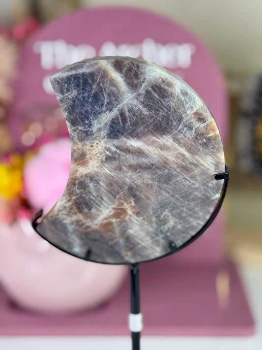 Moonstone with Sunstone Moon on Black Stand (416B)