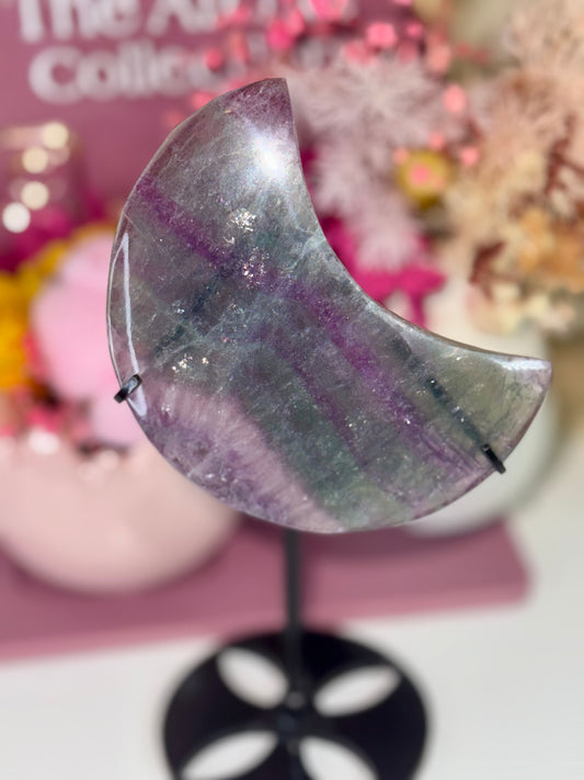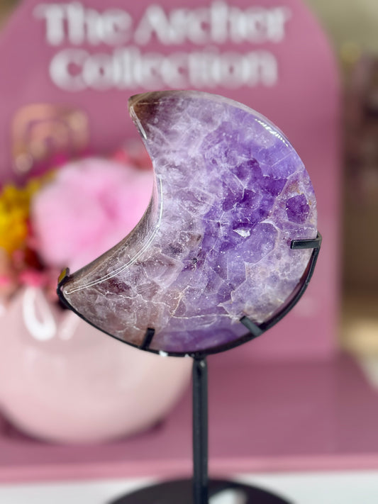 Amethyst and Mexican Crazy Lace Agate Moon with Black Stand (51)