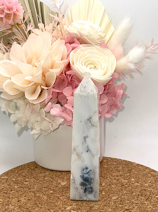 Dendritic Druzy Snow White Agate Tower