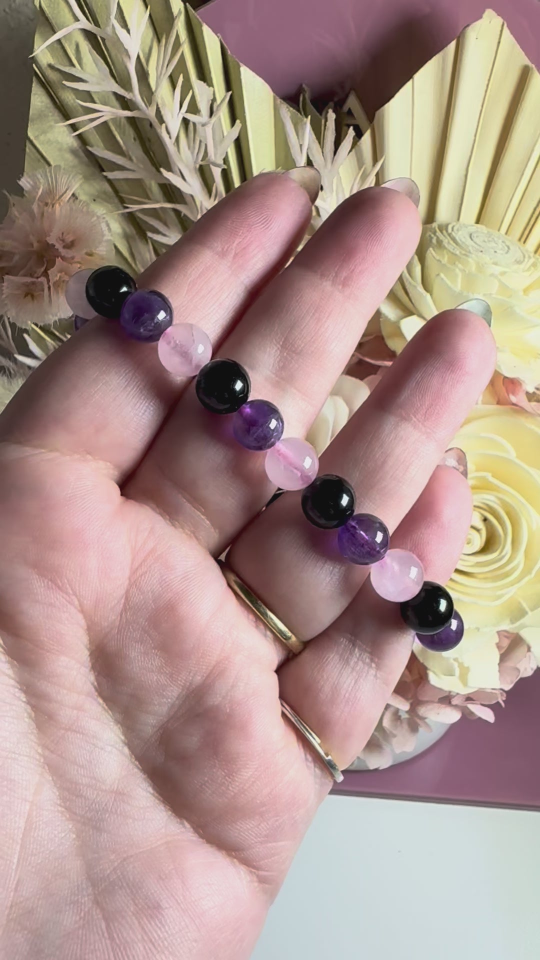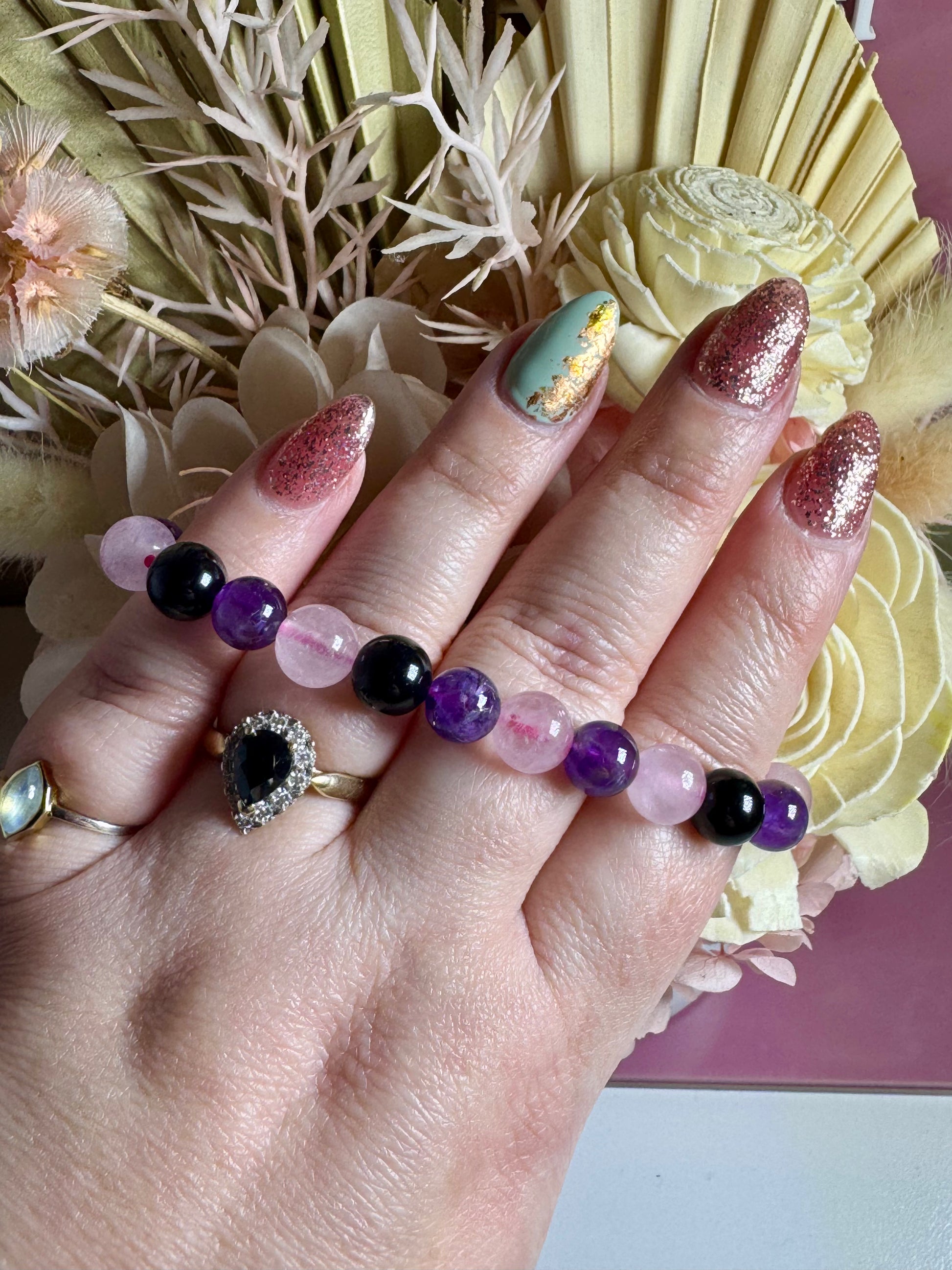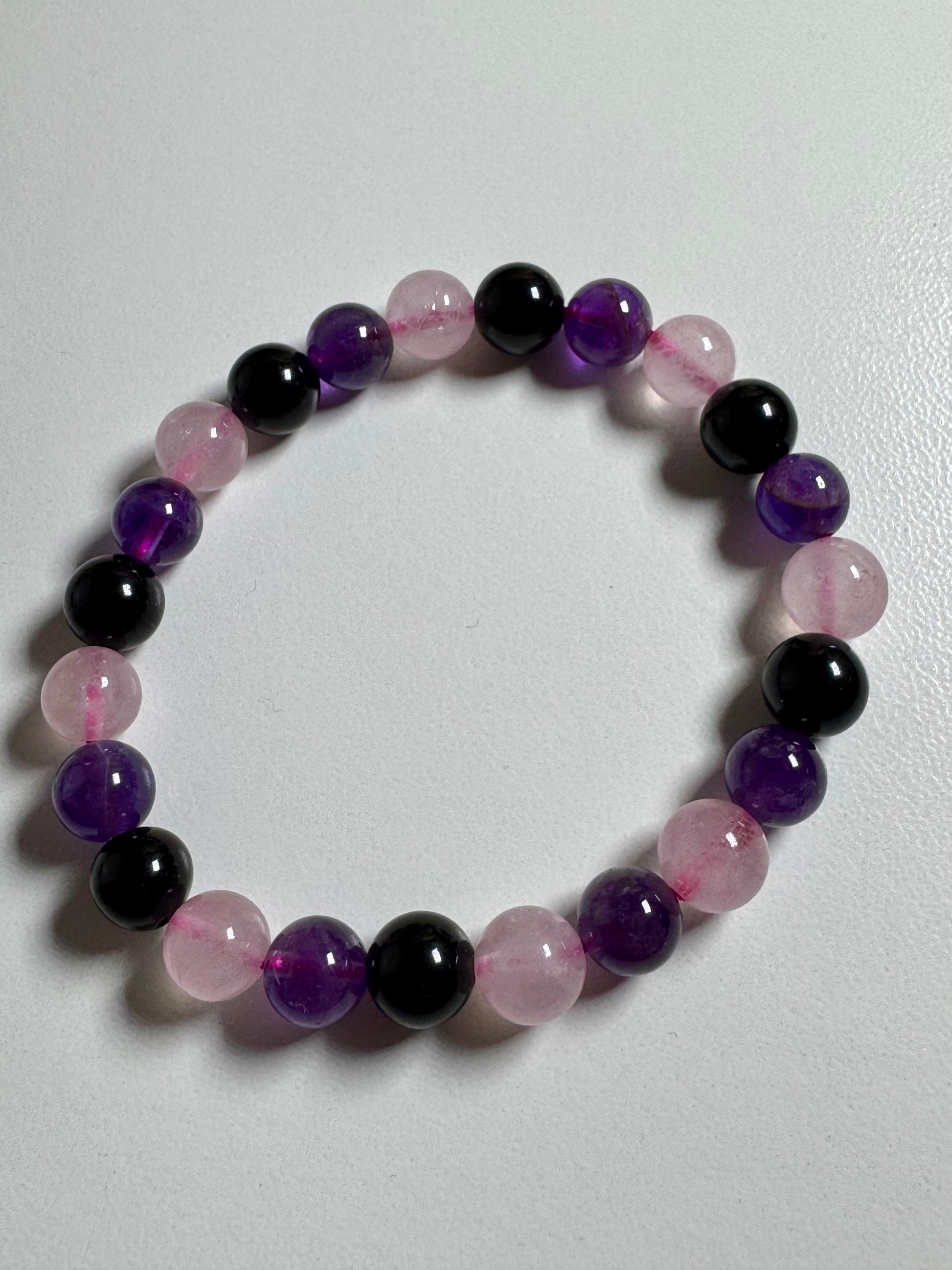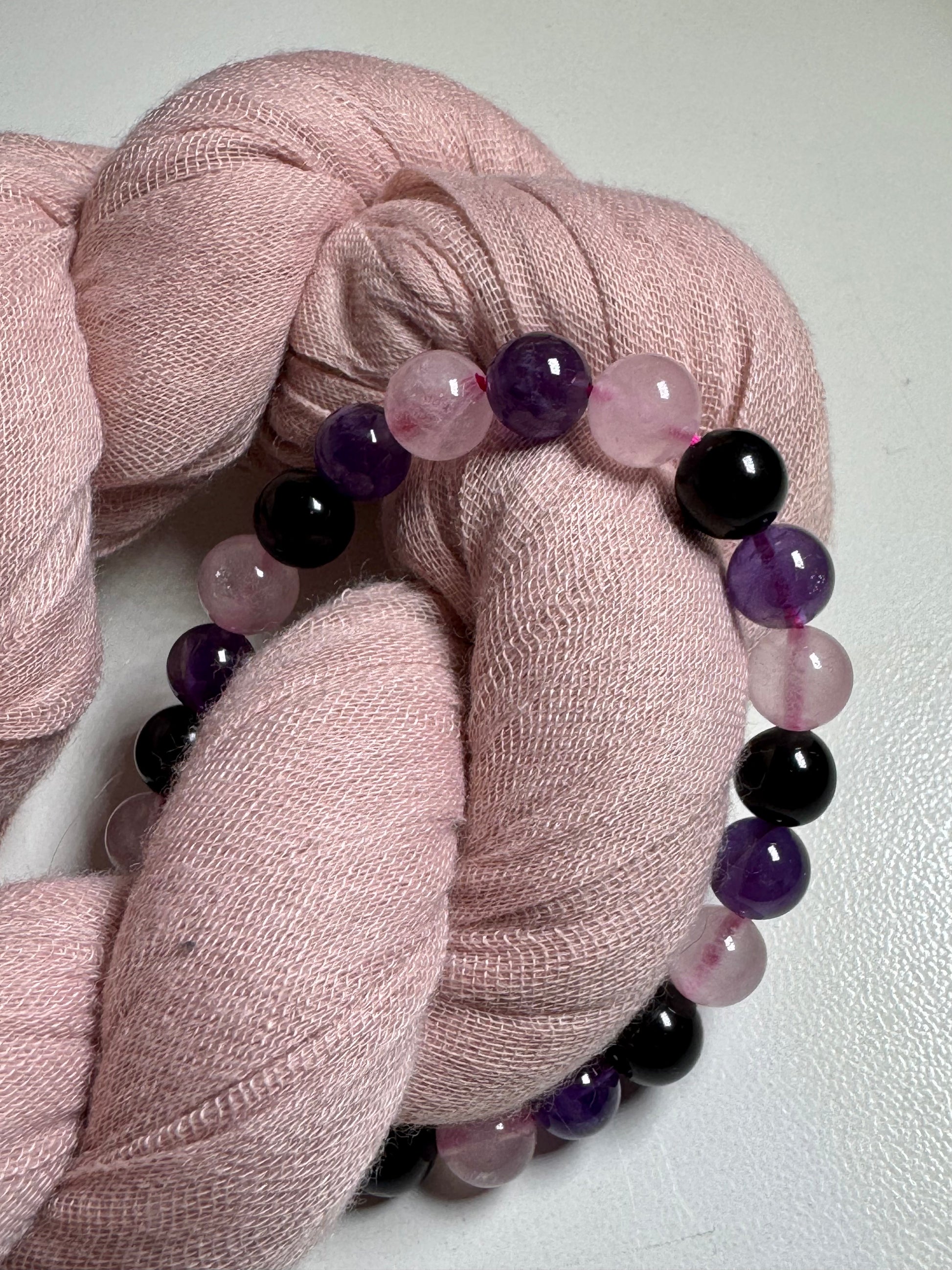 8mm Amethyst, Rose Quartz, Obsidian Bead Bracelet
