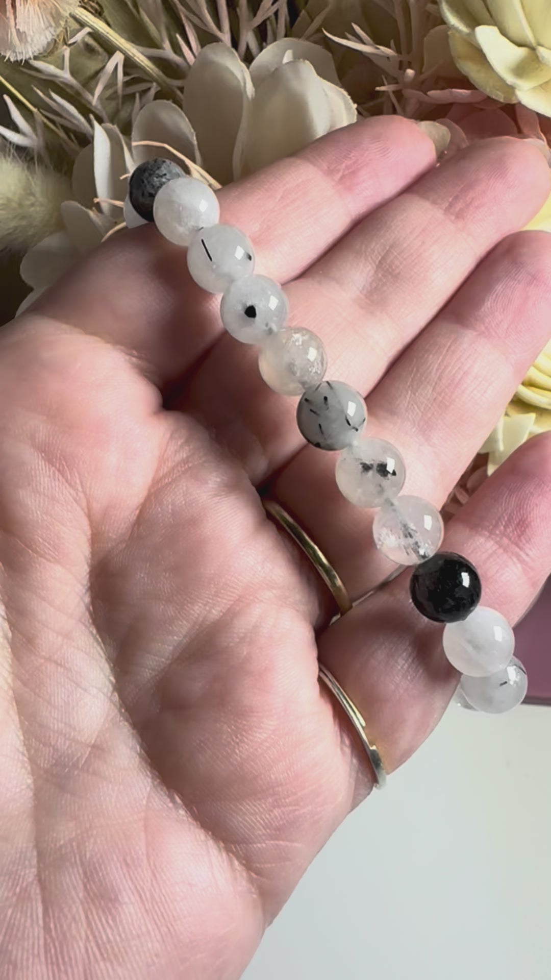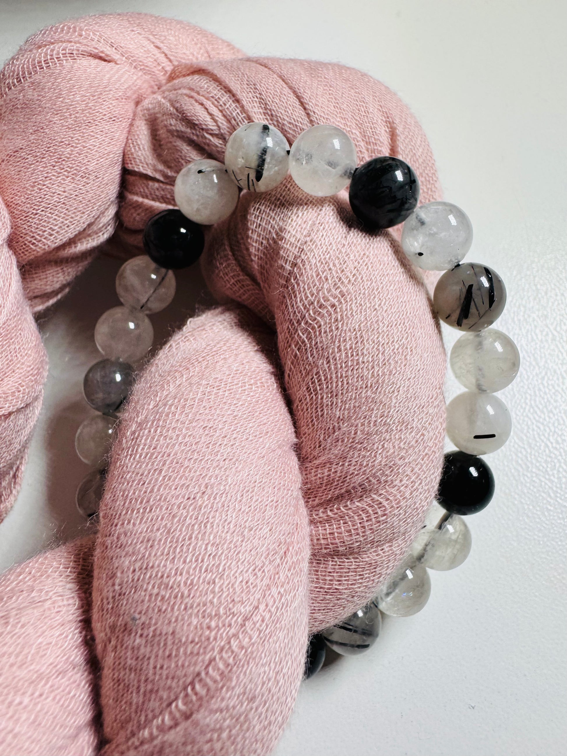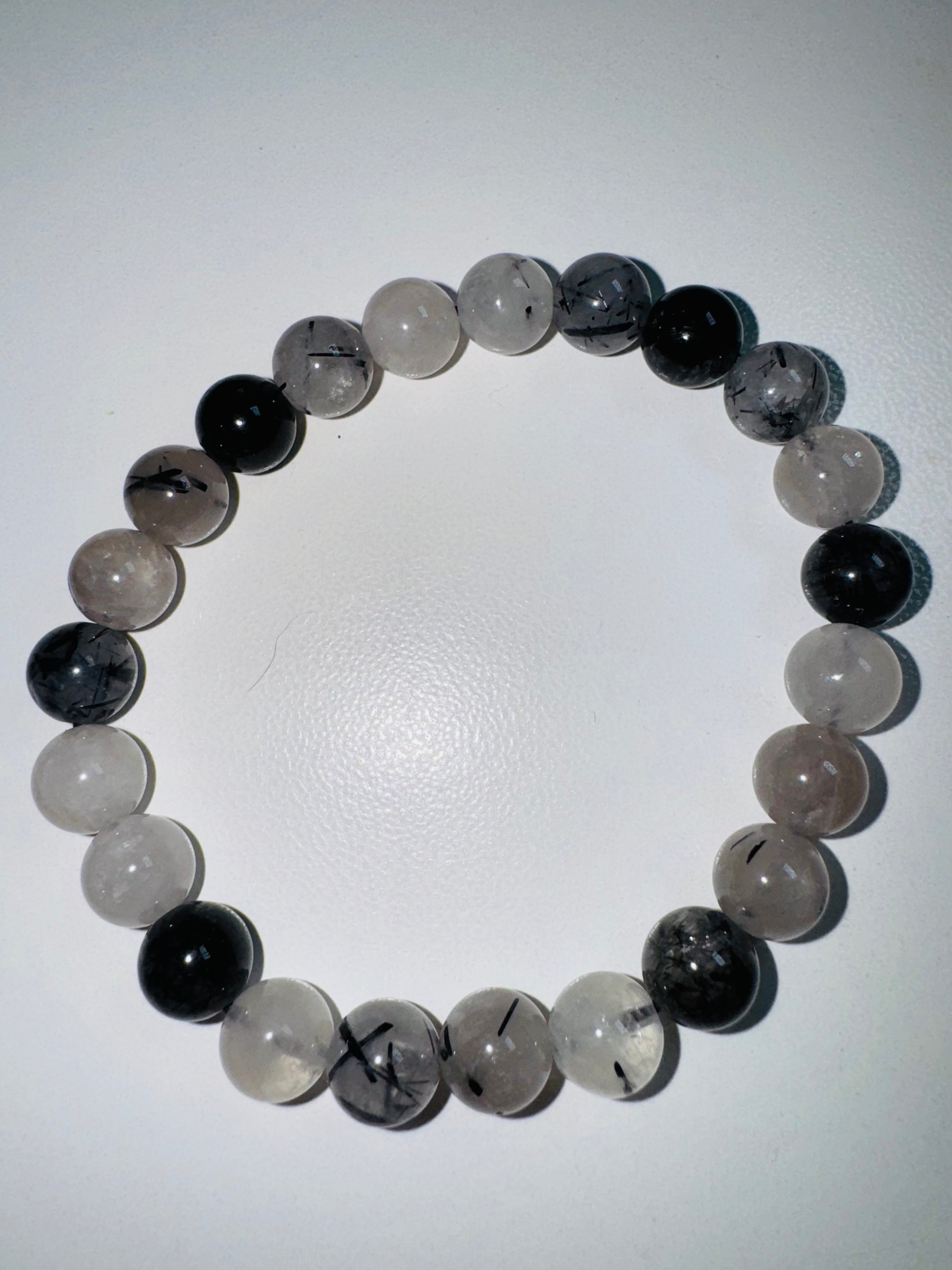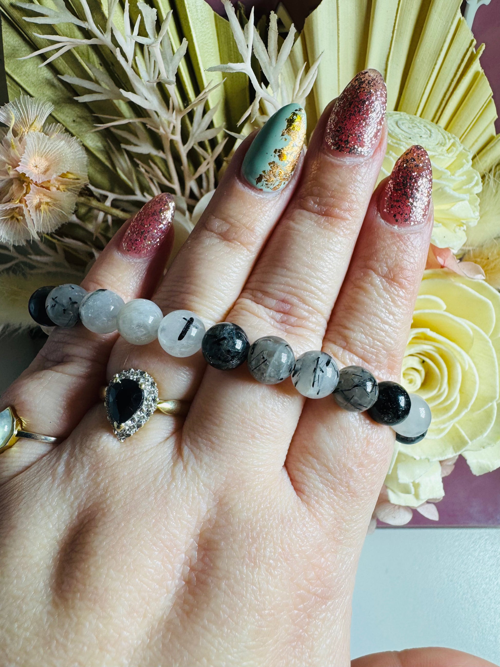 Tourmaline in Quartz is celebrated as a stone of balance, protection, and purification. The quartz amplifies energy while the tourmaline grounds and shields, creating a powerful synergy. It is believed to clear negative energies, harmonize opposites such as light and dark, and promote clarity of thought, making it a favorite for spiritual protection and inner strength.