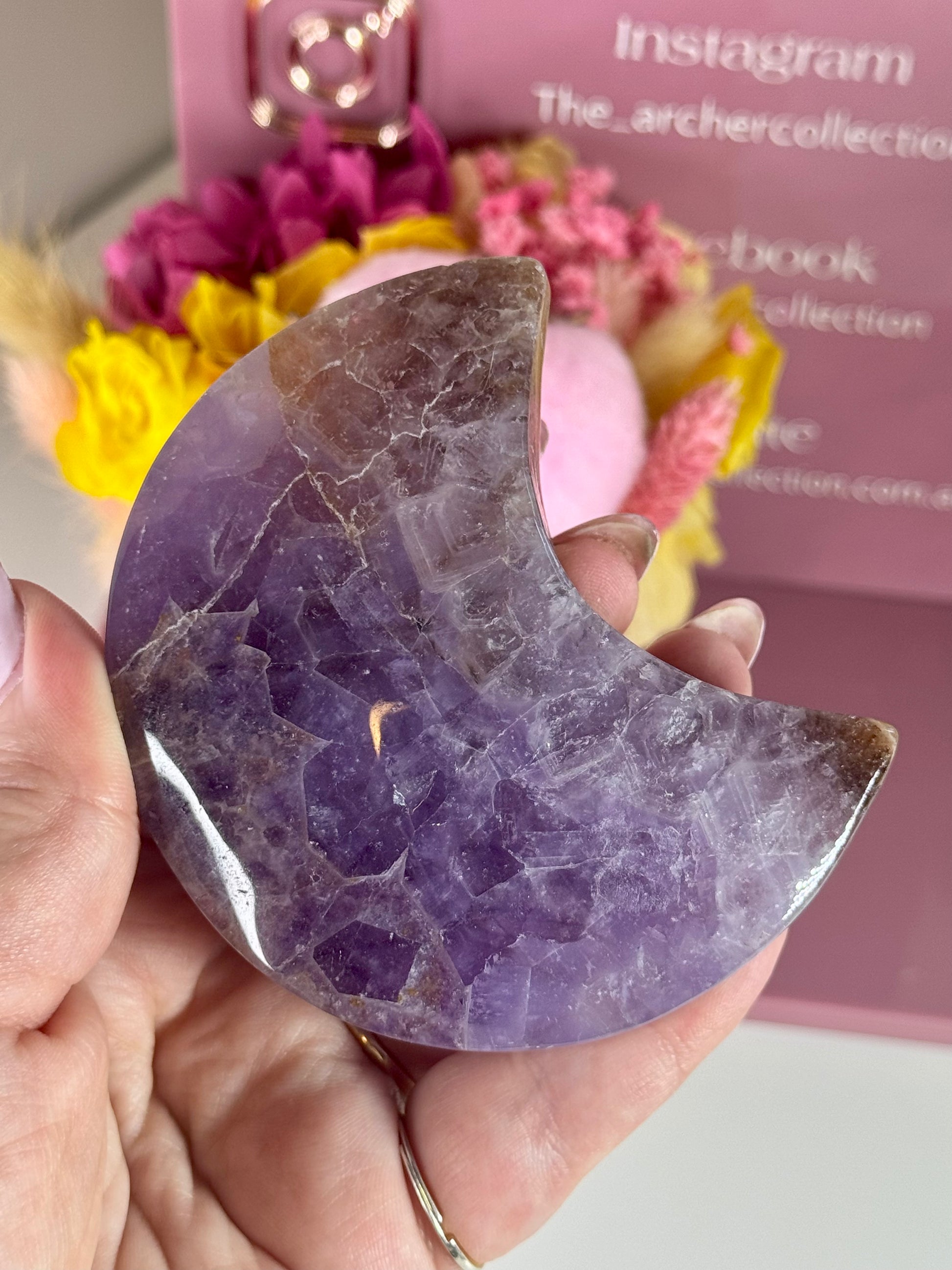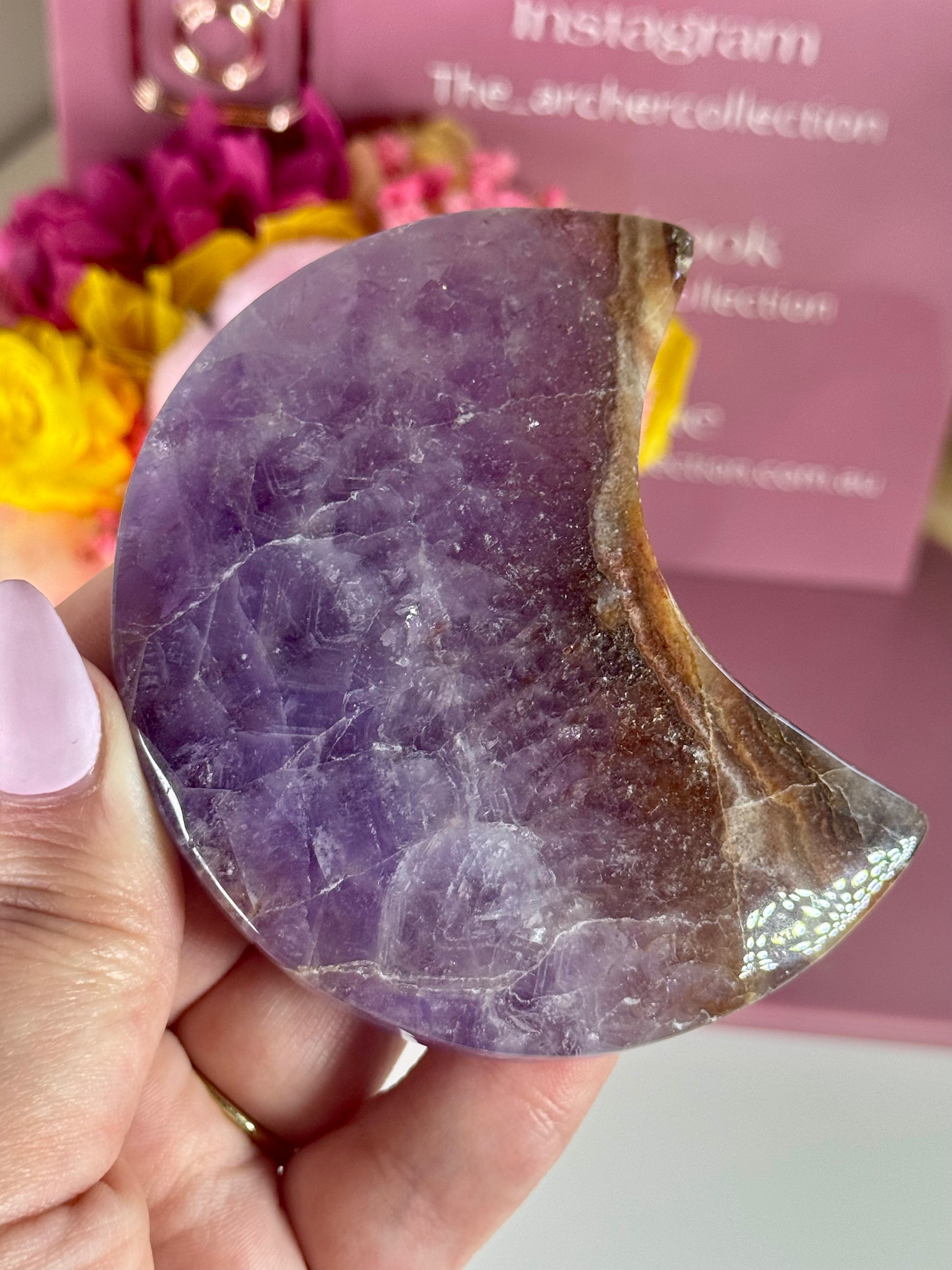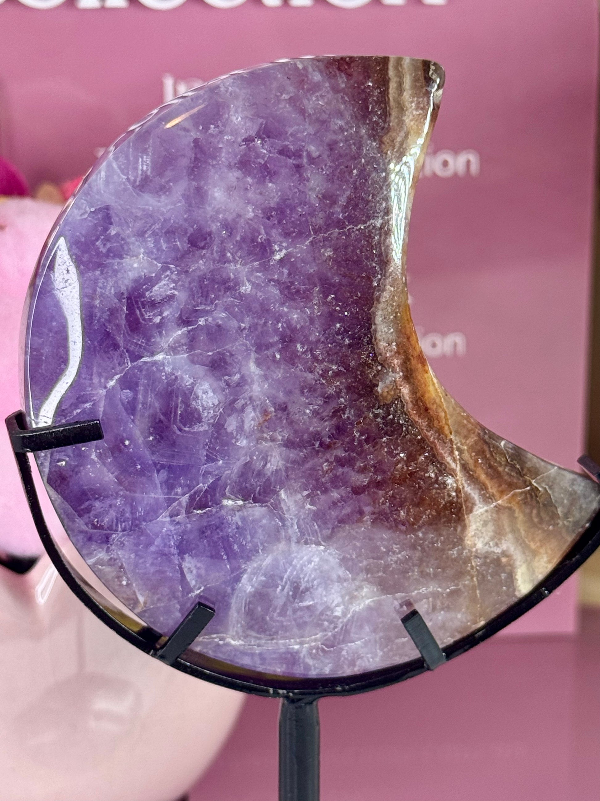 Amethyst and Mexican Crazy Lace Agate Moon with Black Stand (48)