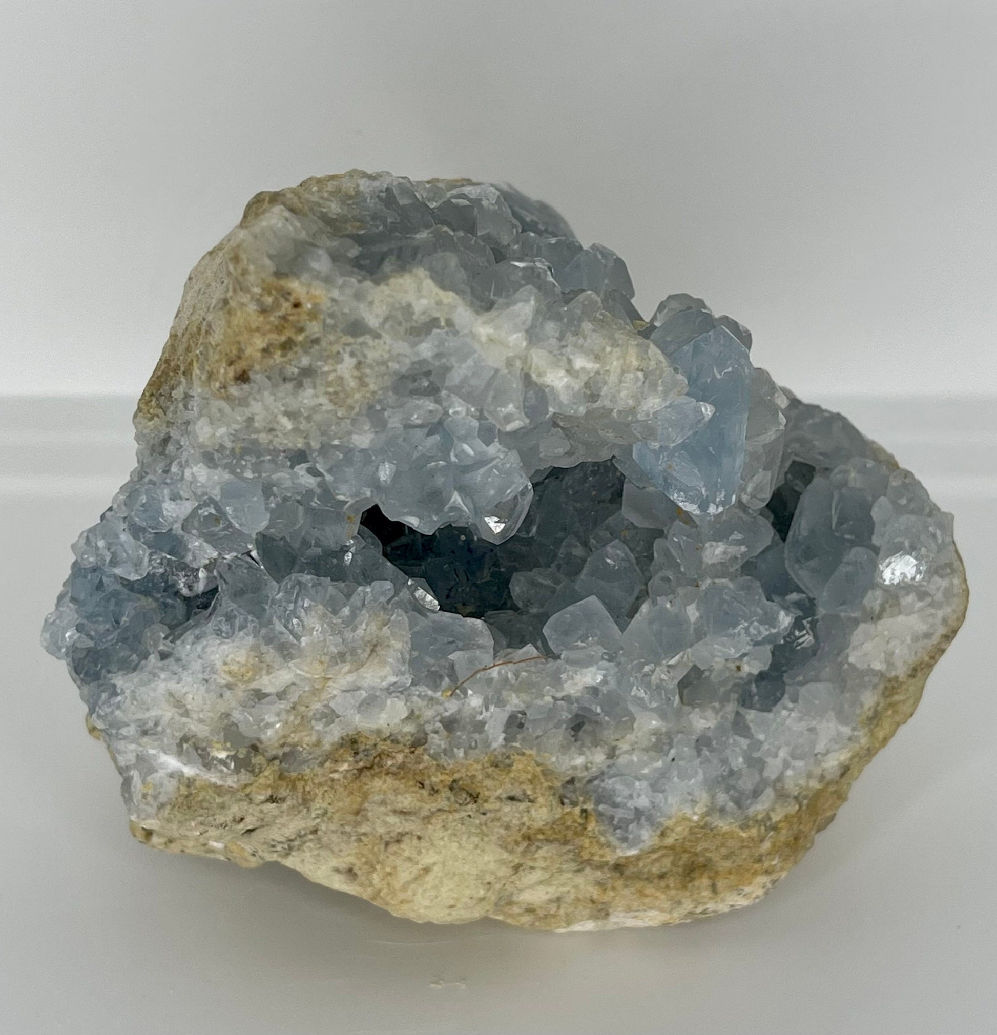 Celestite imbues divine energies and facilitates contact with angelic realms. Creativity is stimulated with this crystal, perfect for arts. Bringing balance and alignment, it is a stone of purity and attracts good fortune. Psychologically, it provides gentle strength and tremendous peace. Being strongly connected to celestial energies, Celestite is ideal for spiritual strength and deep states of meditation. It is well-suited to a visual focus for prayer, mindfulness and healing practices.