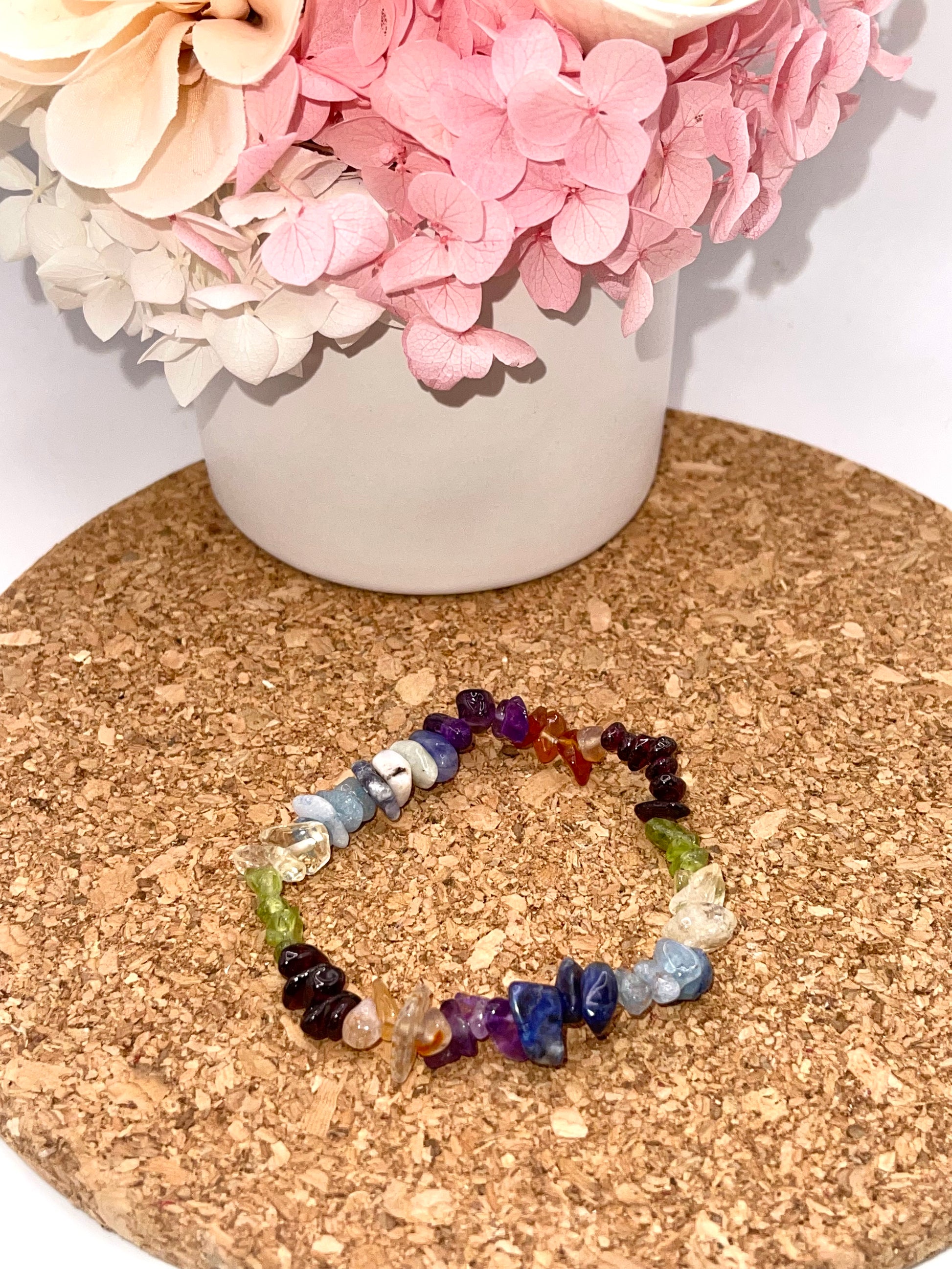 This Chakra Chip Bracelet is designed to help restore balance in the wearer's physical, mental and spiritual health. The bracelet contains seven chakra gemstone beads which align with the seven chakras of the body, allowing for the free flow of energy and promoting relaxation and calm. Its design and power make it a perfect accessory for anyone who wants to achieve physical wellbeing and spiritual balance.
