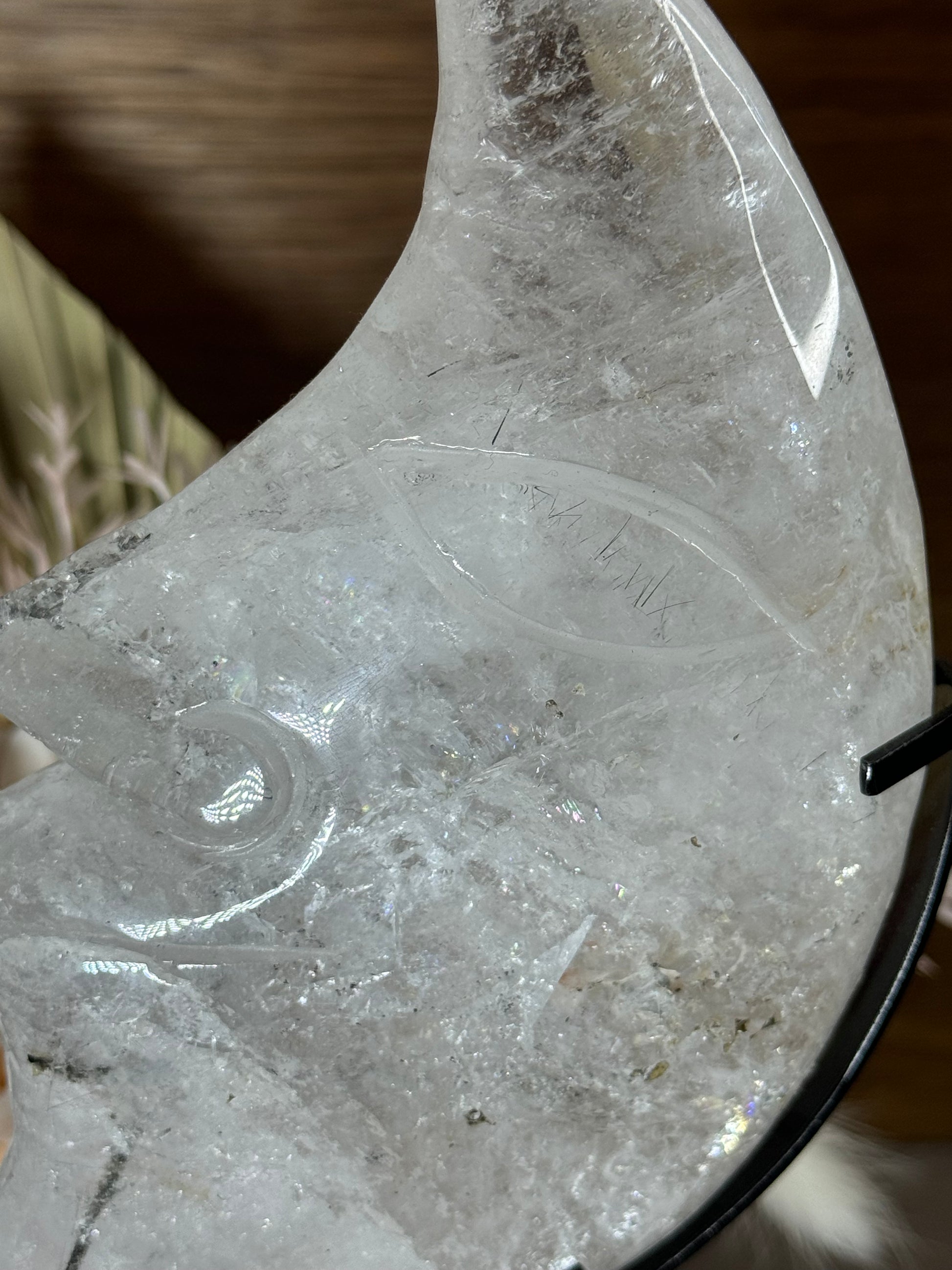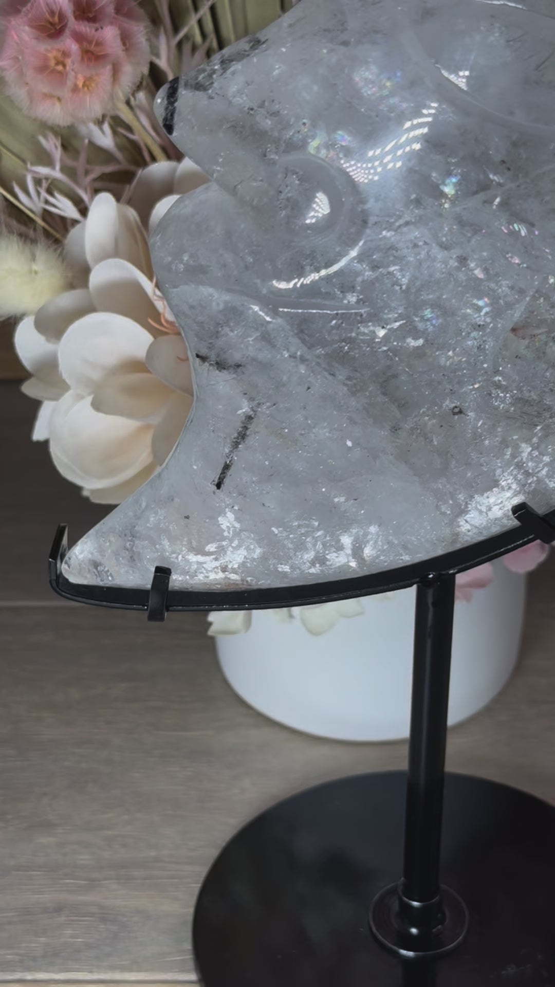 Clear Quartz with Tourmaline XL Moon Face on Stand