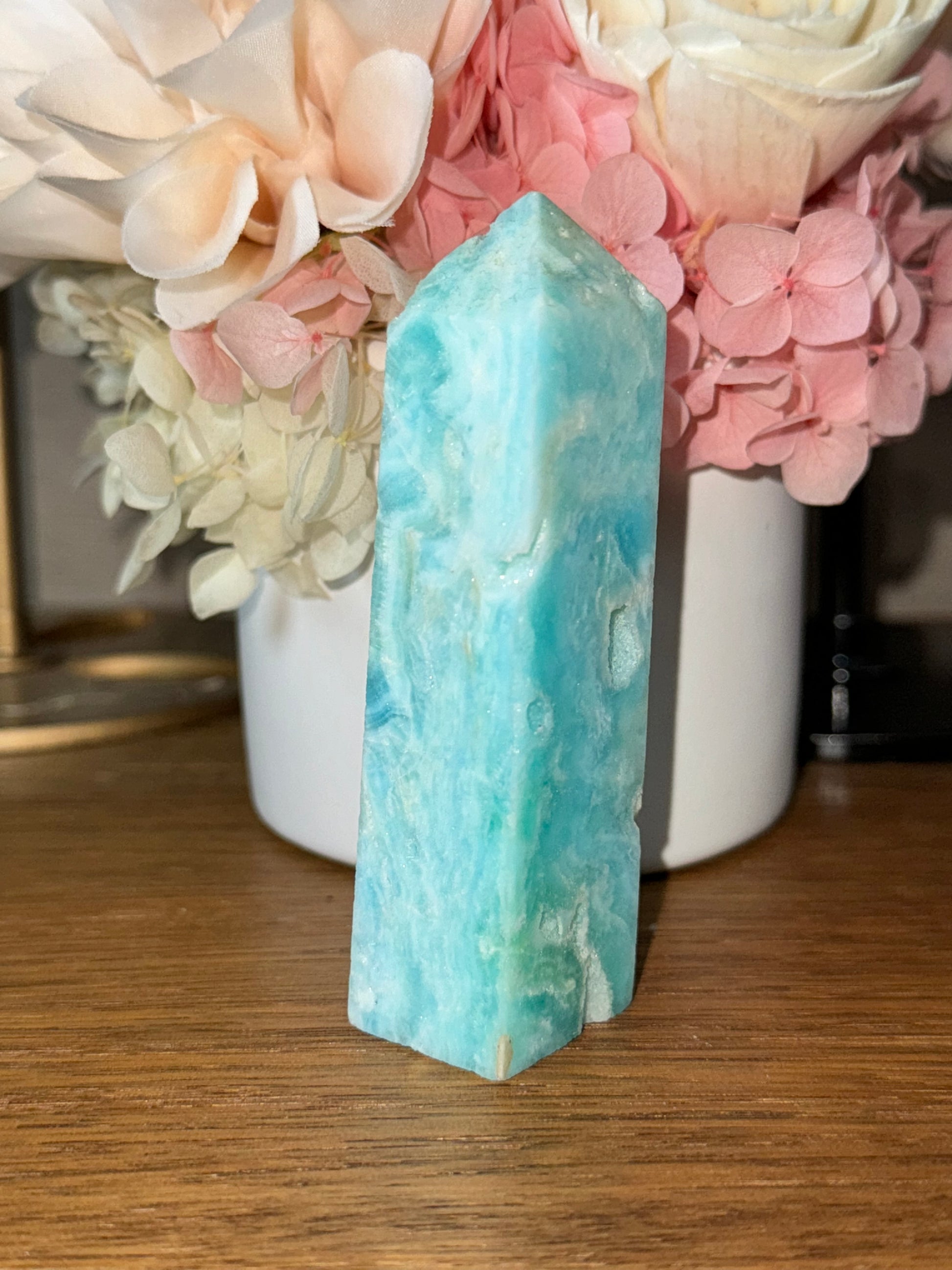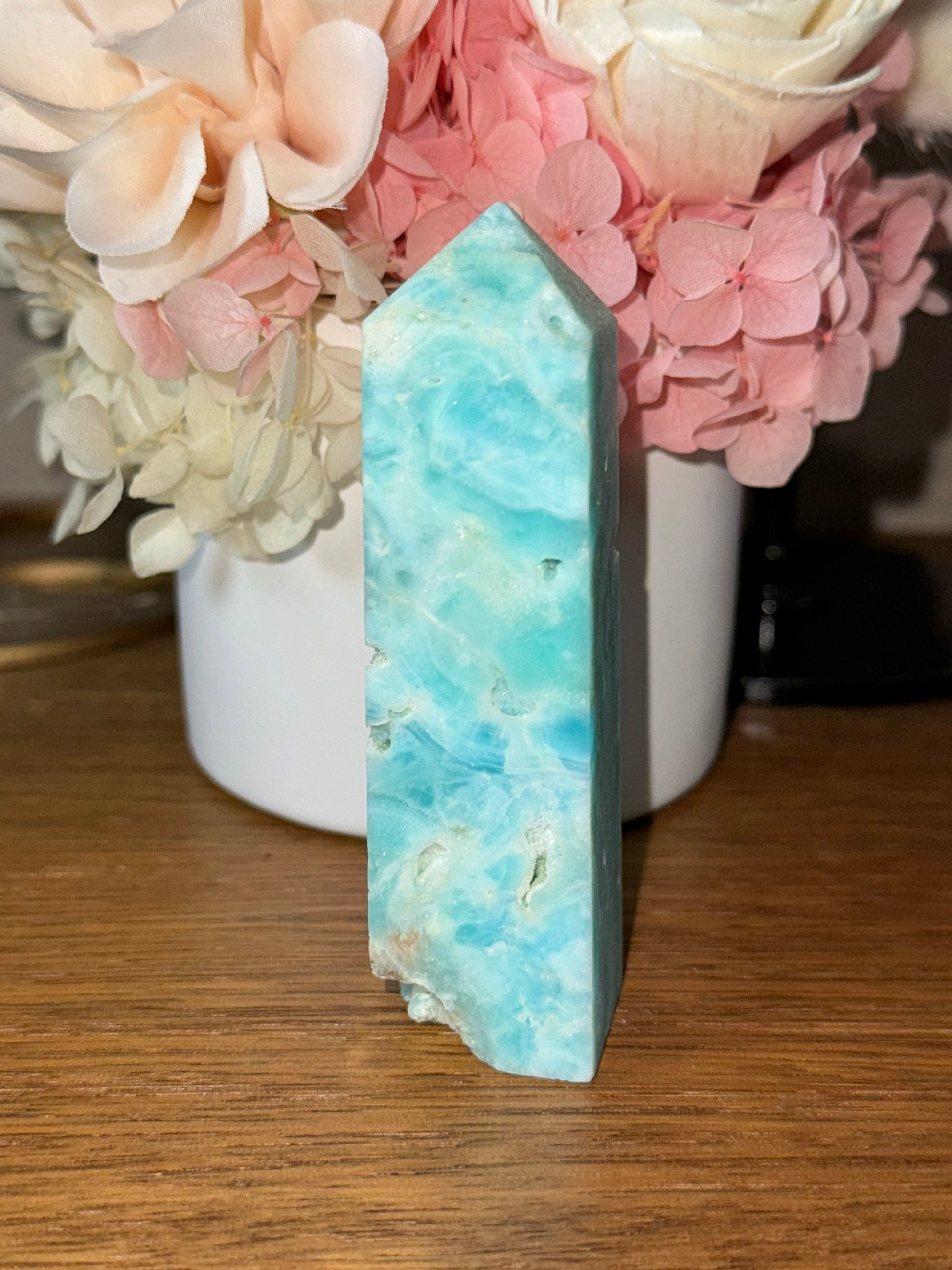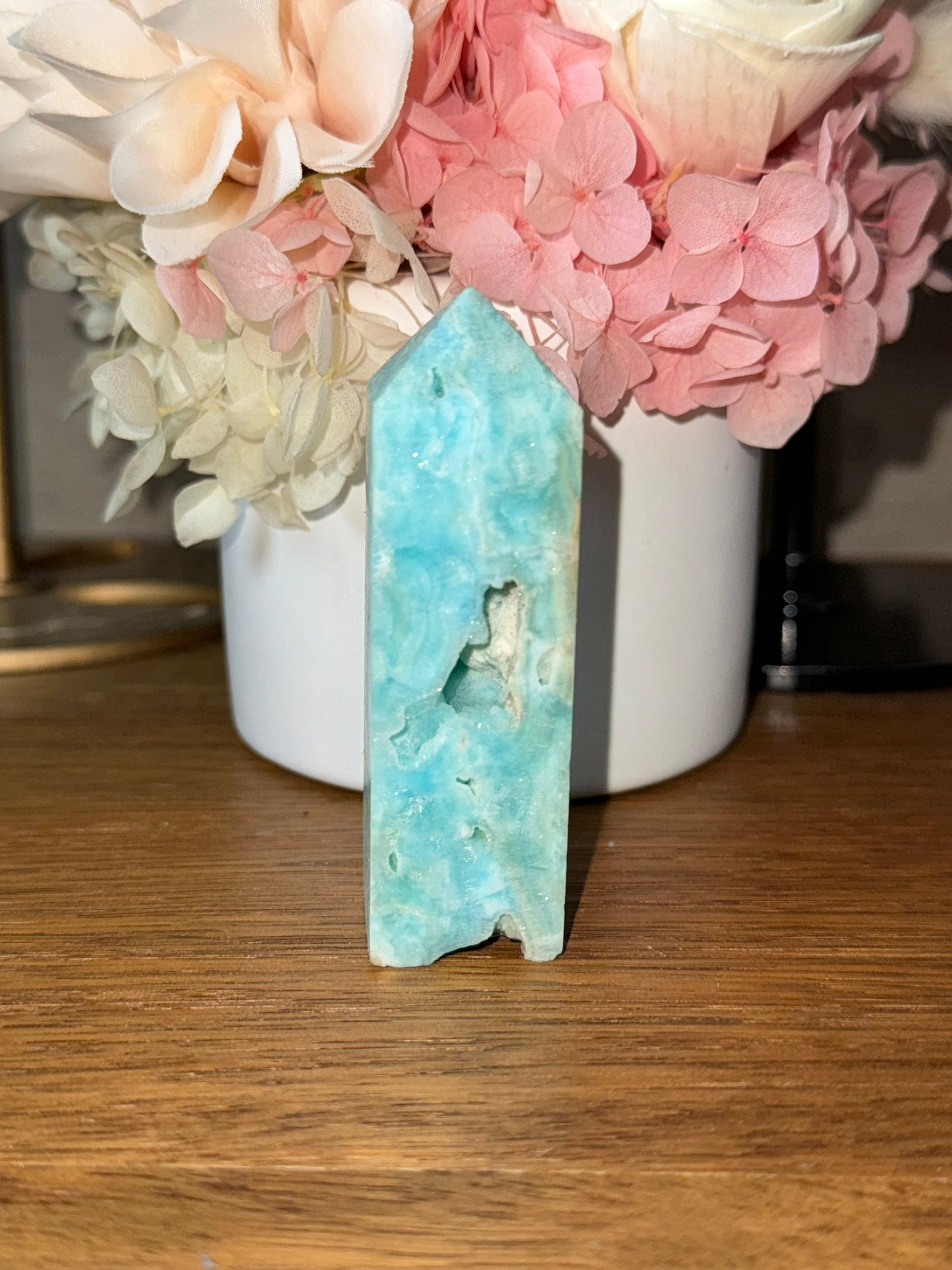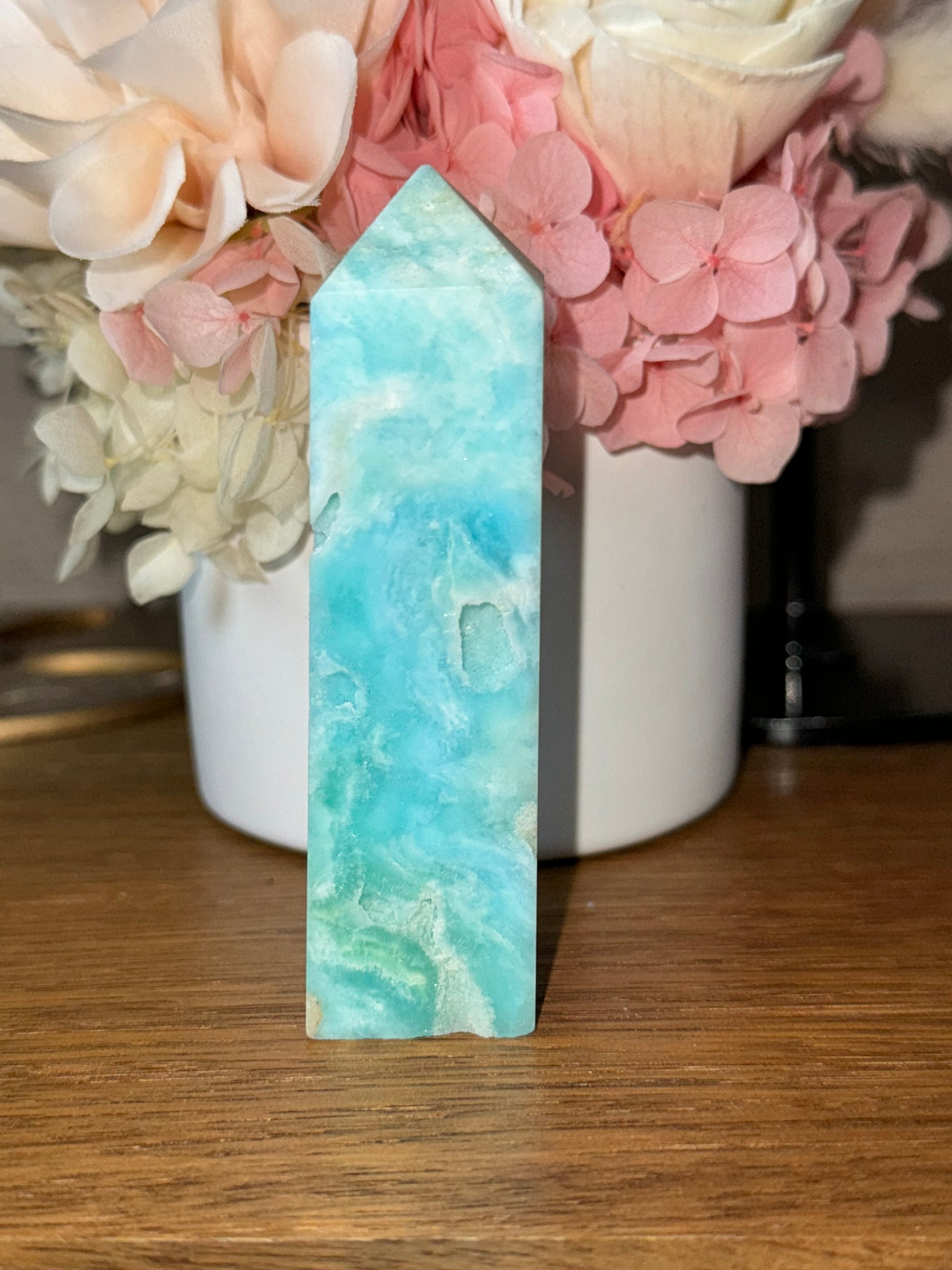 Hemimorphite promotes empathy and positive energy, making it ideal for overwhelming emotions. It can also aid in communication and healing.