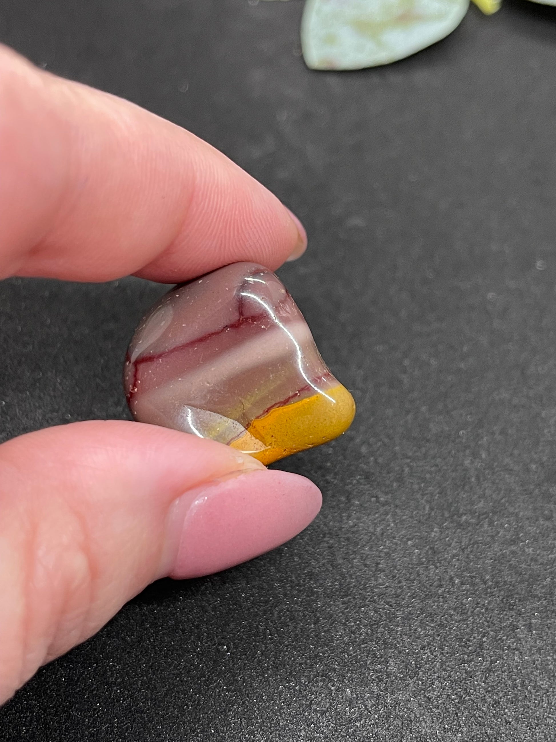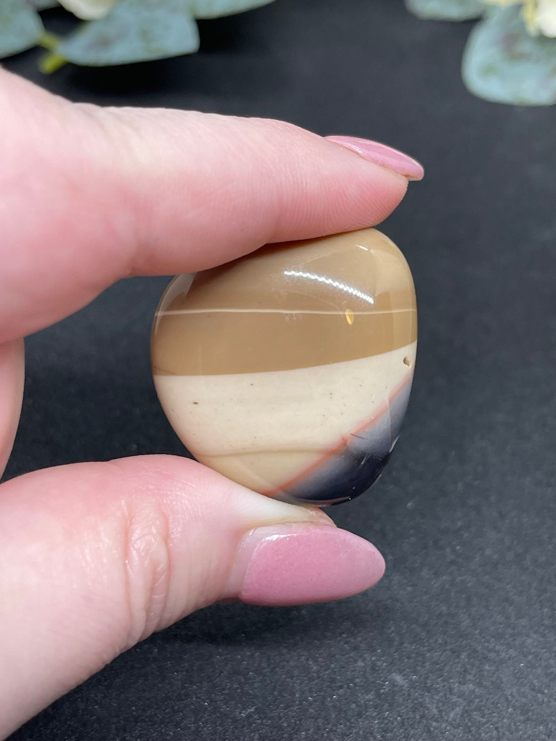 This Mookaite Jasper is renowned as a healing stone. It helps to focus thoughts and emotions to empower clear decision-making. The stone also provides stability and perspective on life and is known to boost self-esteem. Additionally, it can dispel fear and motivate users to take risks and embark on new adventures.