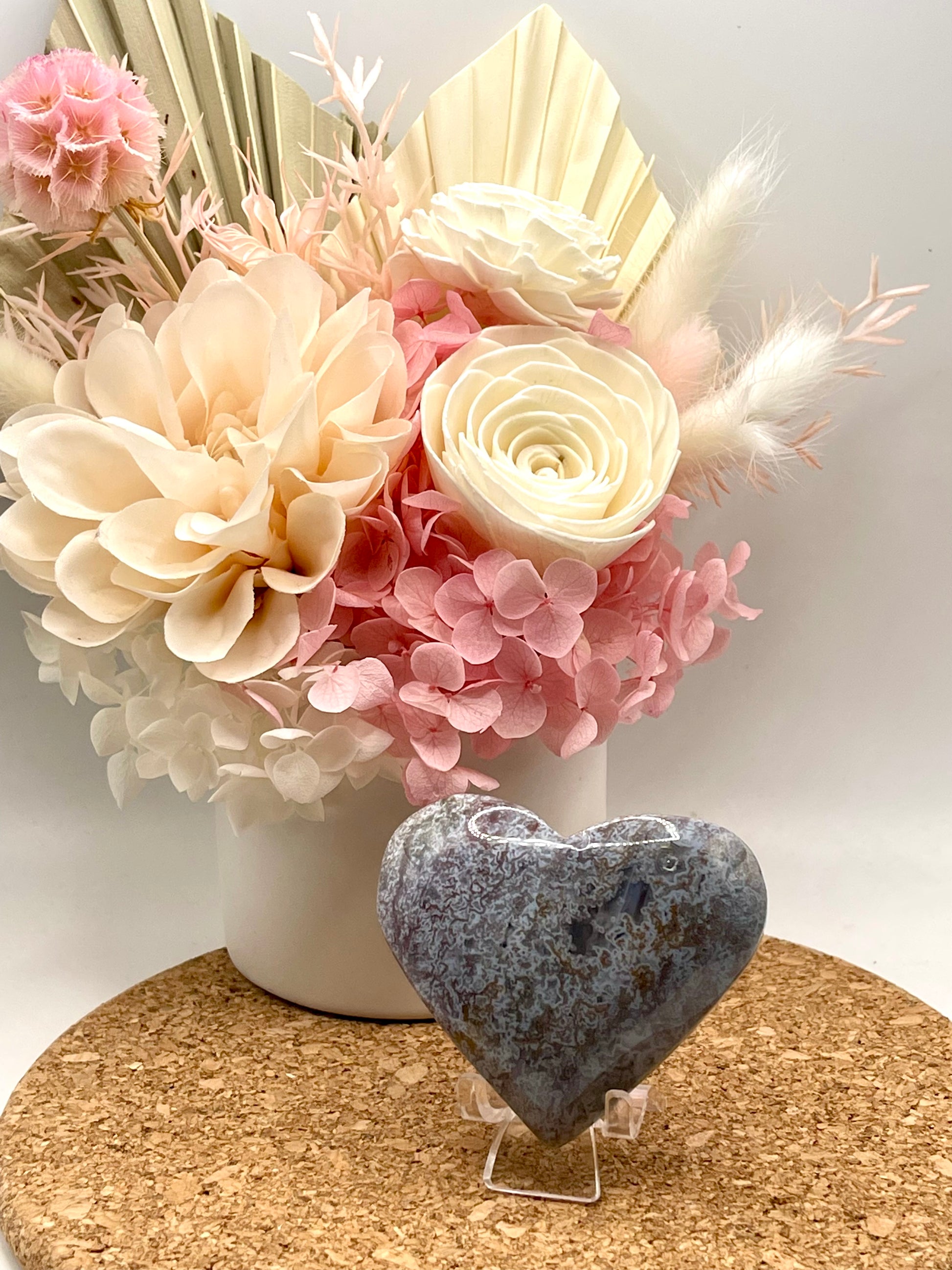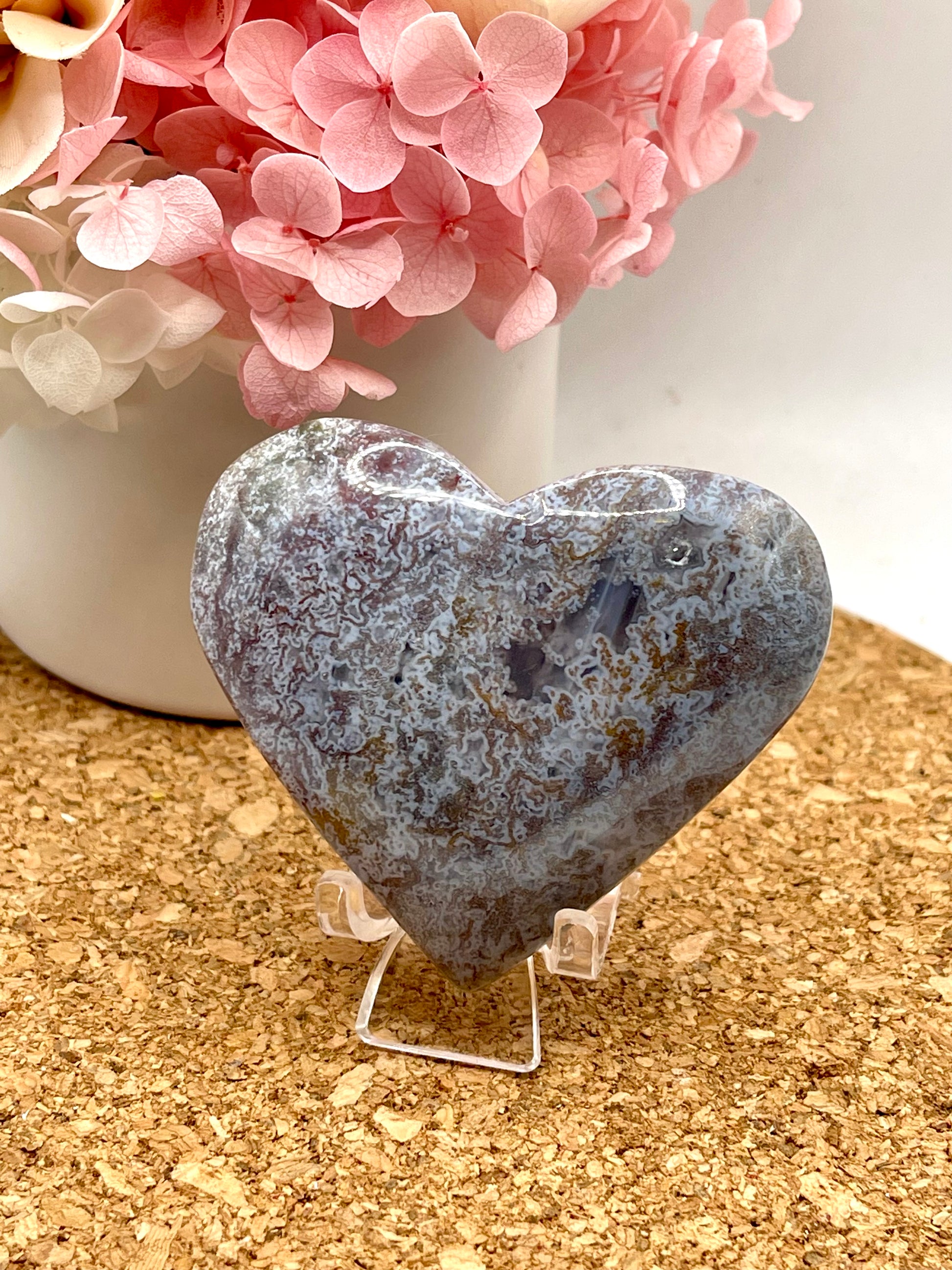 Ocean Jasper releases emotional strain and encourages positivity and self-expression. It helps heal and resolve emotions, relationships, and oneself. It fosters positivity and comfort within oneself.