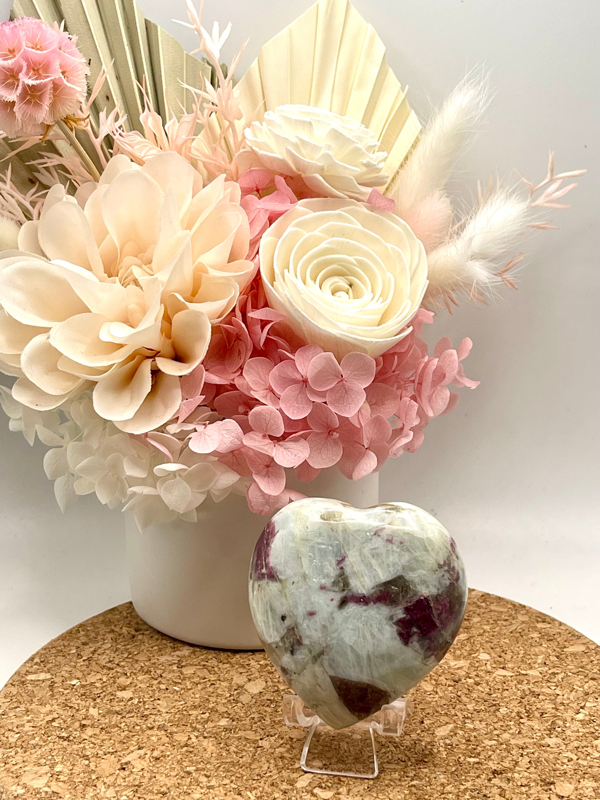 Pink Tourmoline stone for unconditional love Soothes the soul. Encourages compassion & forgiveness. Increases self-confidence. Promotes positive thinking. Encourages enlightenment. Discover inner peace and heal your heart with this crystal's soothing energy. Open your heart to yourself and others with unconditional love and acceptance. Let your inner strength, creativity, and intuitive power shine!