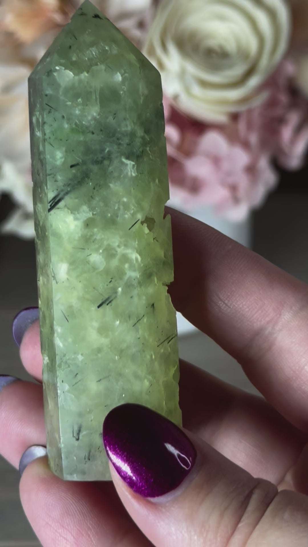 Prehnite is known for its power to aid lucid dreams, chase nightmares, and promote communication with other realms. It's said to be calming and can lessen anger, nervousness, and worries. It can help to cleanse your aura, get in touch with nature, and offer a direct connection to your solar plexus chakra. By meditating with Prehnite, it can help you realize your intentions and purpose. Use this stone daily to stay committed to your goals and bring about the reality you desire.