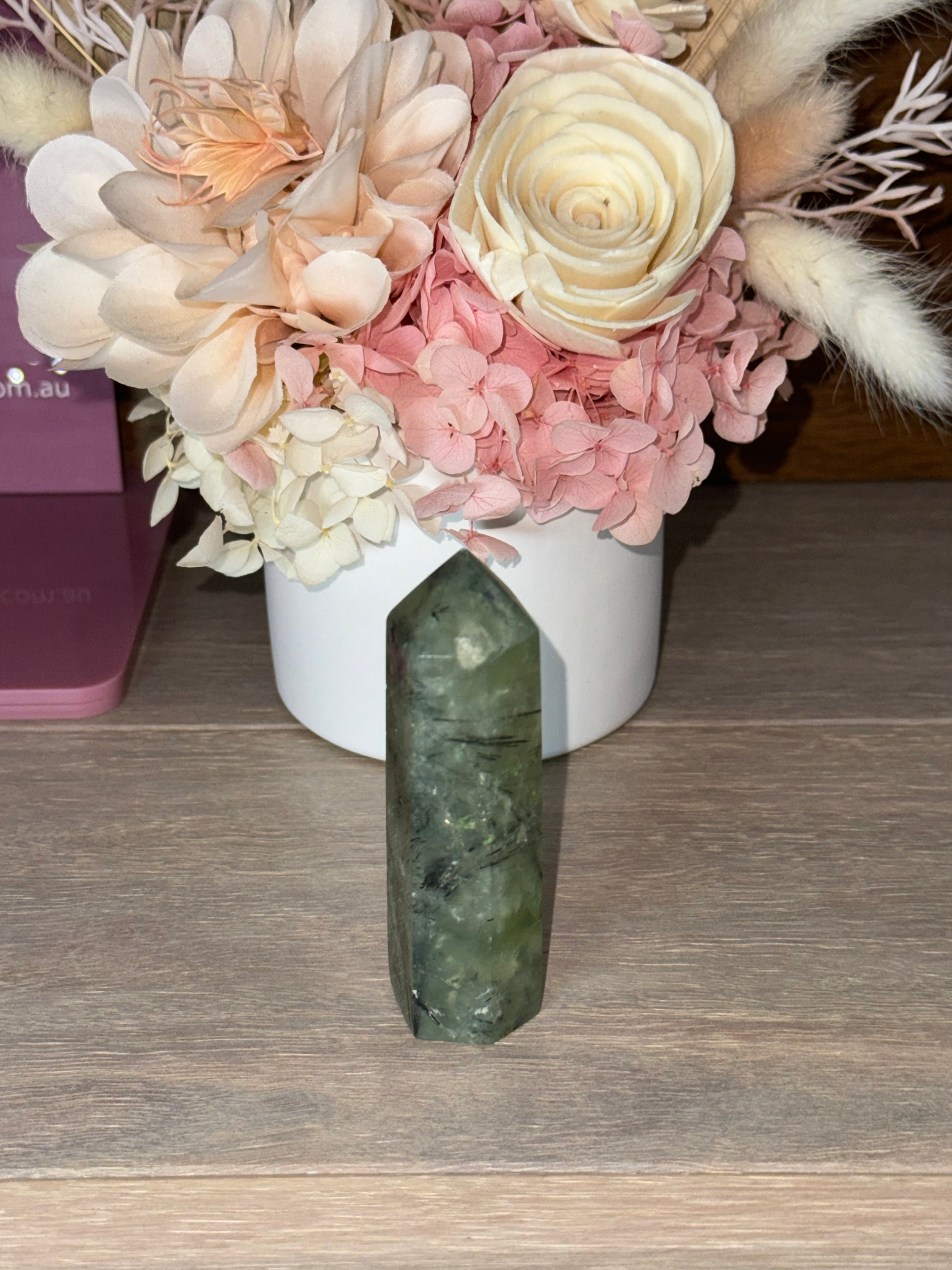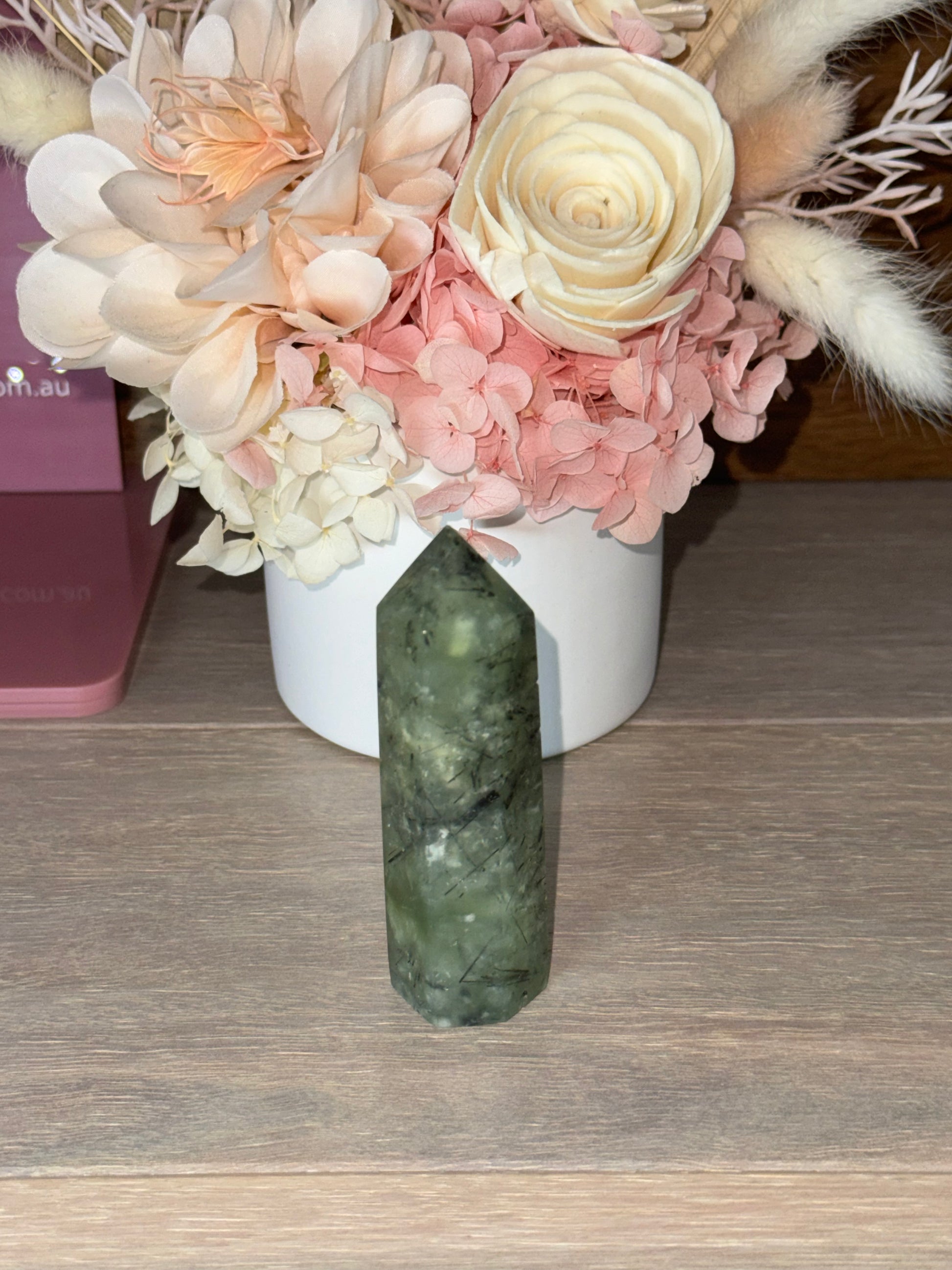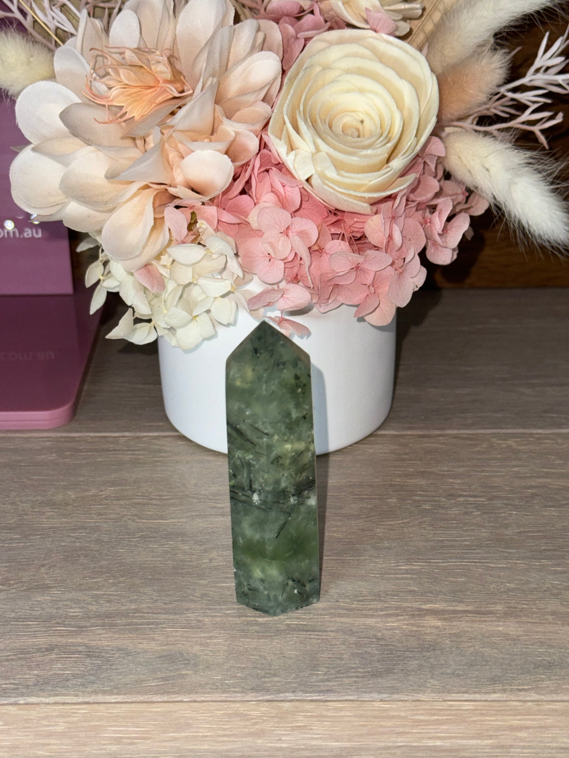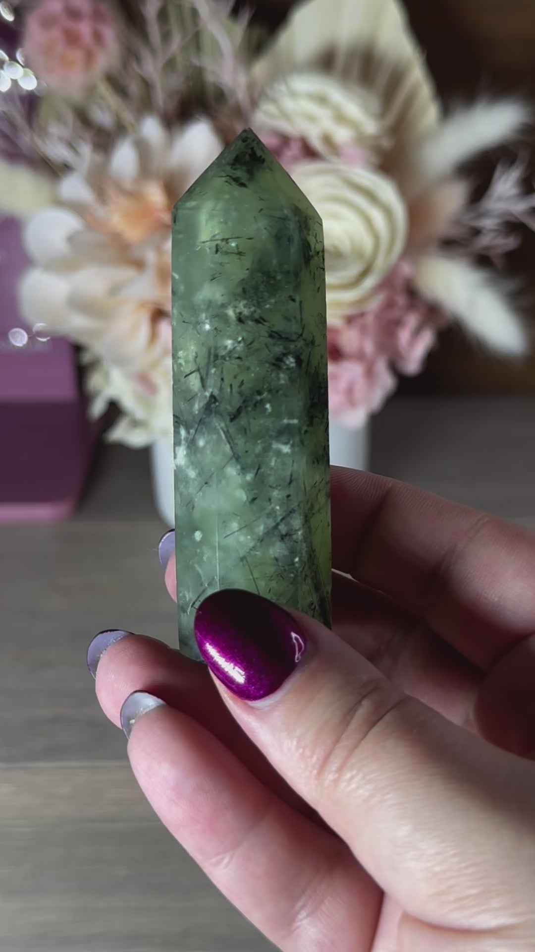 Prehnite is known for its power to aid lucid dreams, chase nightmares, and promote communication with other realms. It's said to be calming and can lessen anger, nervousness, and worries. It can help to cleanse your aura, get in touch with nature, and offer a direct connection to your solar plexus chakra. By meditating with Prehnite, it can help you realize your intentions and purpose. Use this stone daily to stay committed to your goals and bring about the reality you desire.