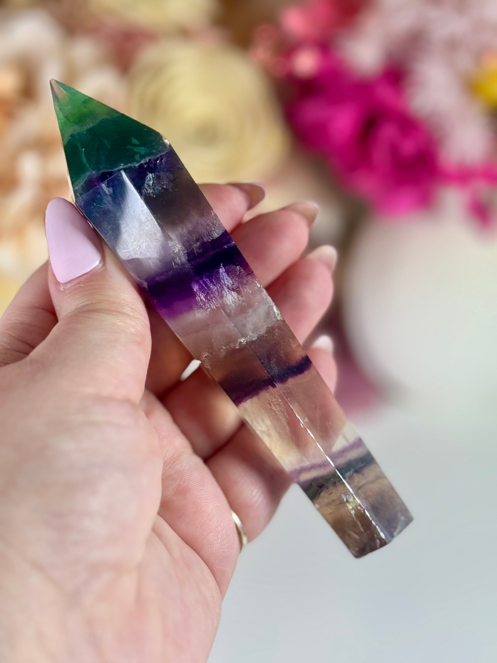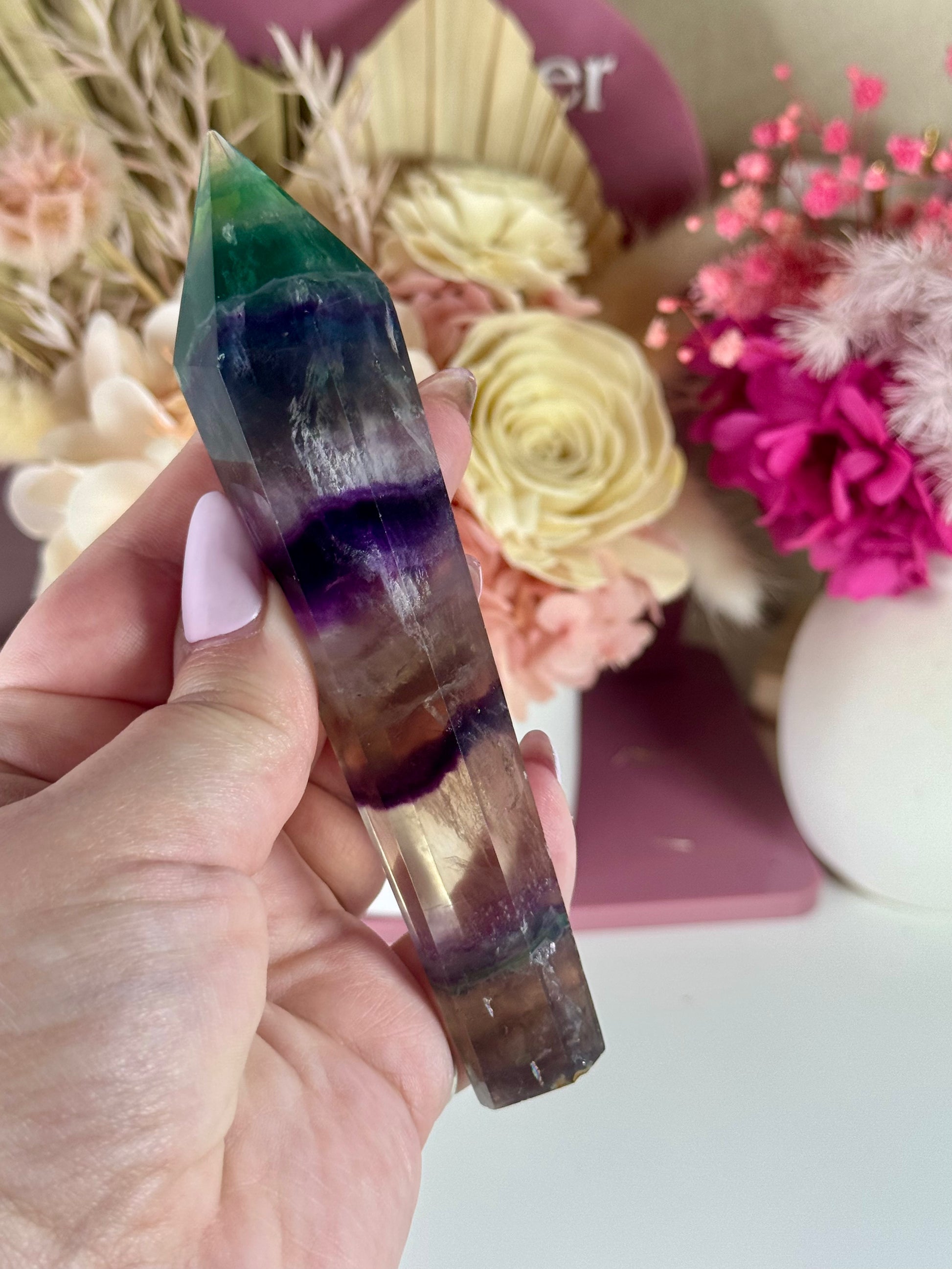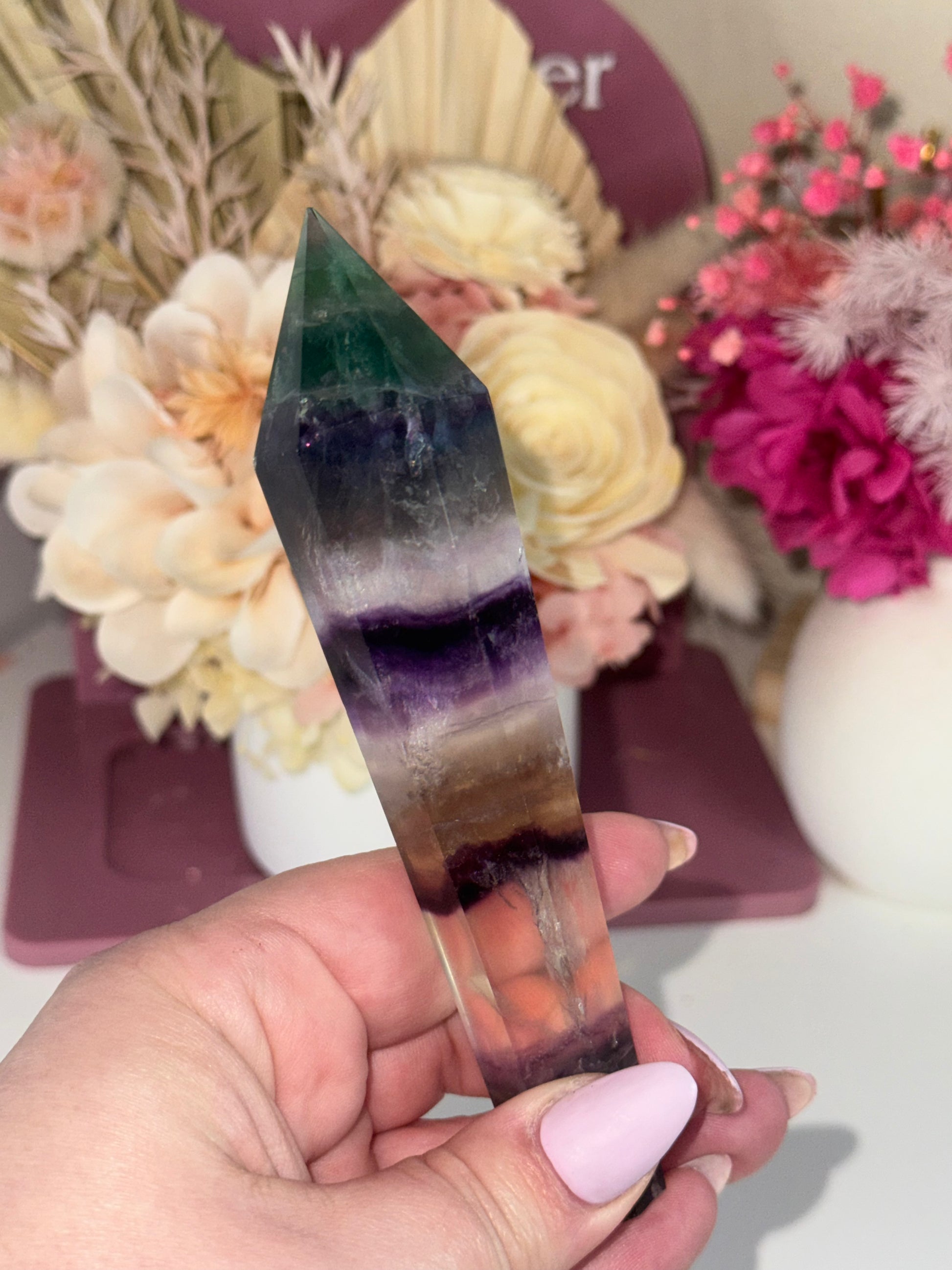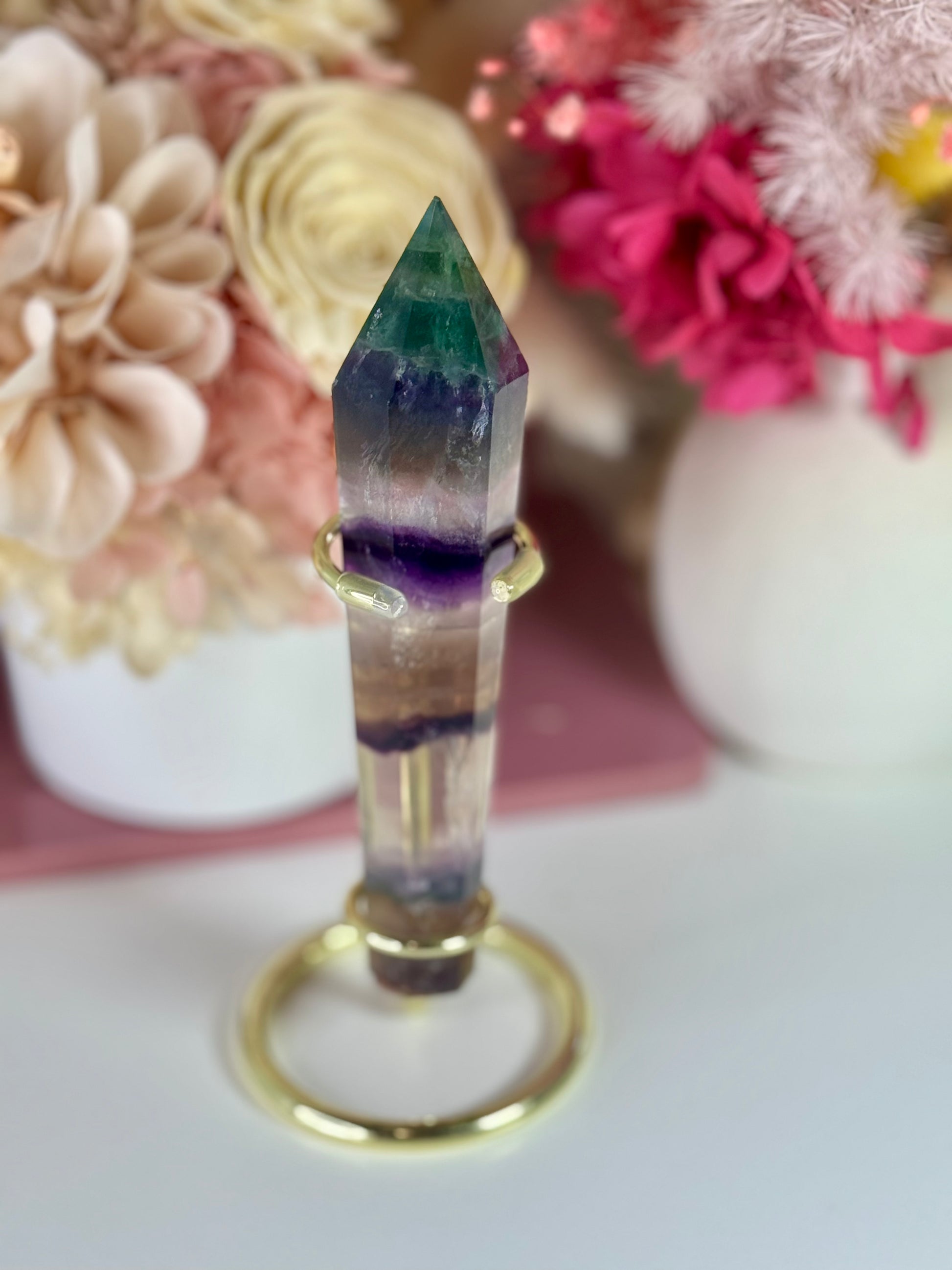 Rainbow Fluorite Wand with Gold Stand