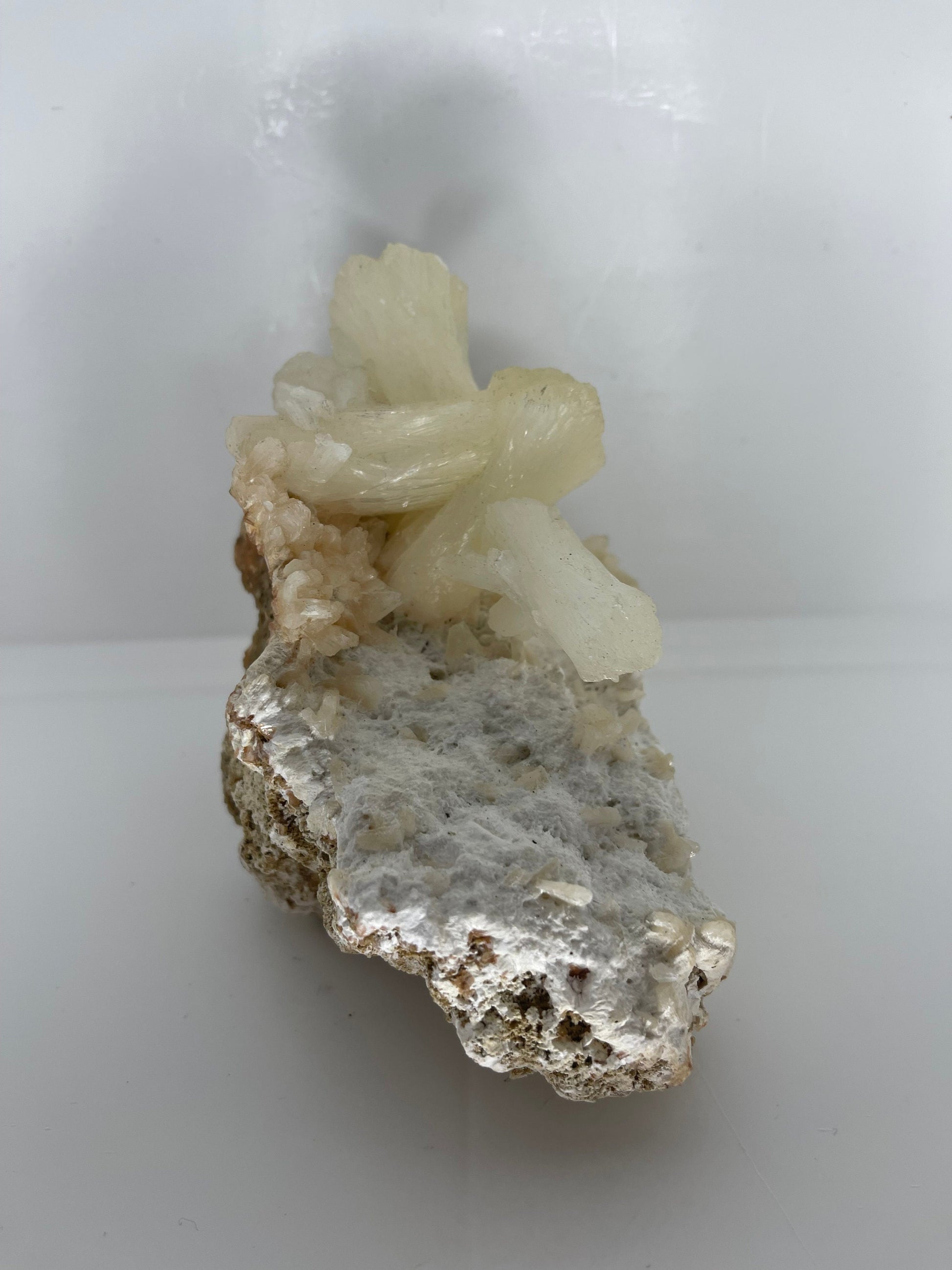 Stilbite emanates loving, healing vibrations that fill the environment with joy and uplifting energy. It connects the heart, third eye, and crown chakras, helping one to clearly see their emotions. This gentle stone helps one to heal from pain and trauma, soften emotions, and gain insight into why they still hurt. Meditating with Stilbite creates a strong connection between heart and mind, allowing one to find peace in their emotional body. It's also a powerful dreamwork tool, helping one to absorb details and remember their dreams. Place a piece of Stilbite on a nightstand or above the bed and let it work its magic.